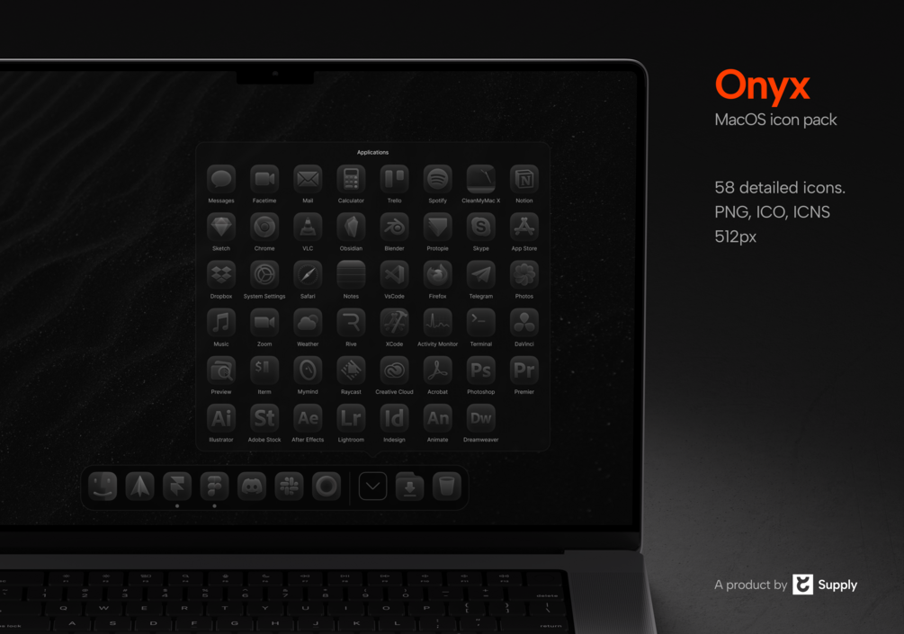 Onyx is a dark icon pack made for MacOS.